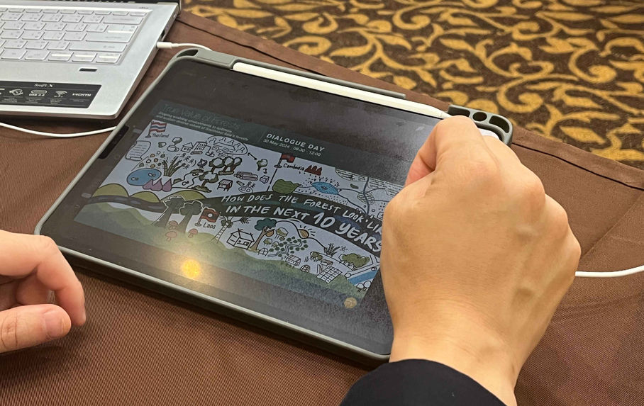 สรุปเสวนาเป็นภาพให้กับ Wyss Academy องค์กรระหว่างประเทศสวิสเซอร์แลนด์ ระดมสมองผู้มีส่วนได้เสียในการดูแลรักษาป่าไม้ เพื่อแก้ปัญหาการเปลี่ยนแปลงสภาพภูมิอากาศ